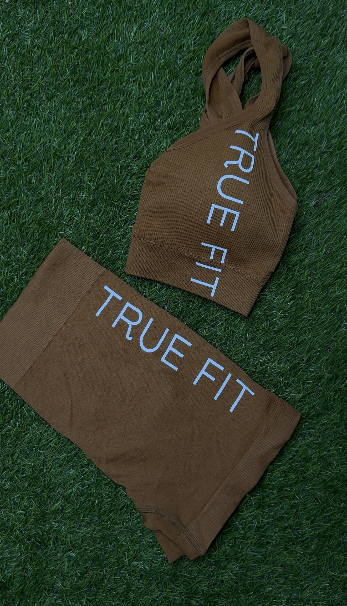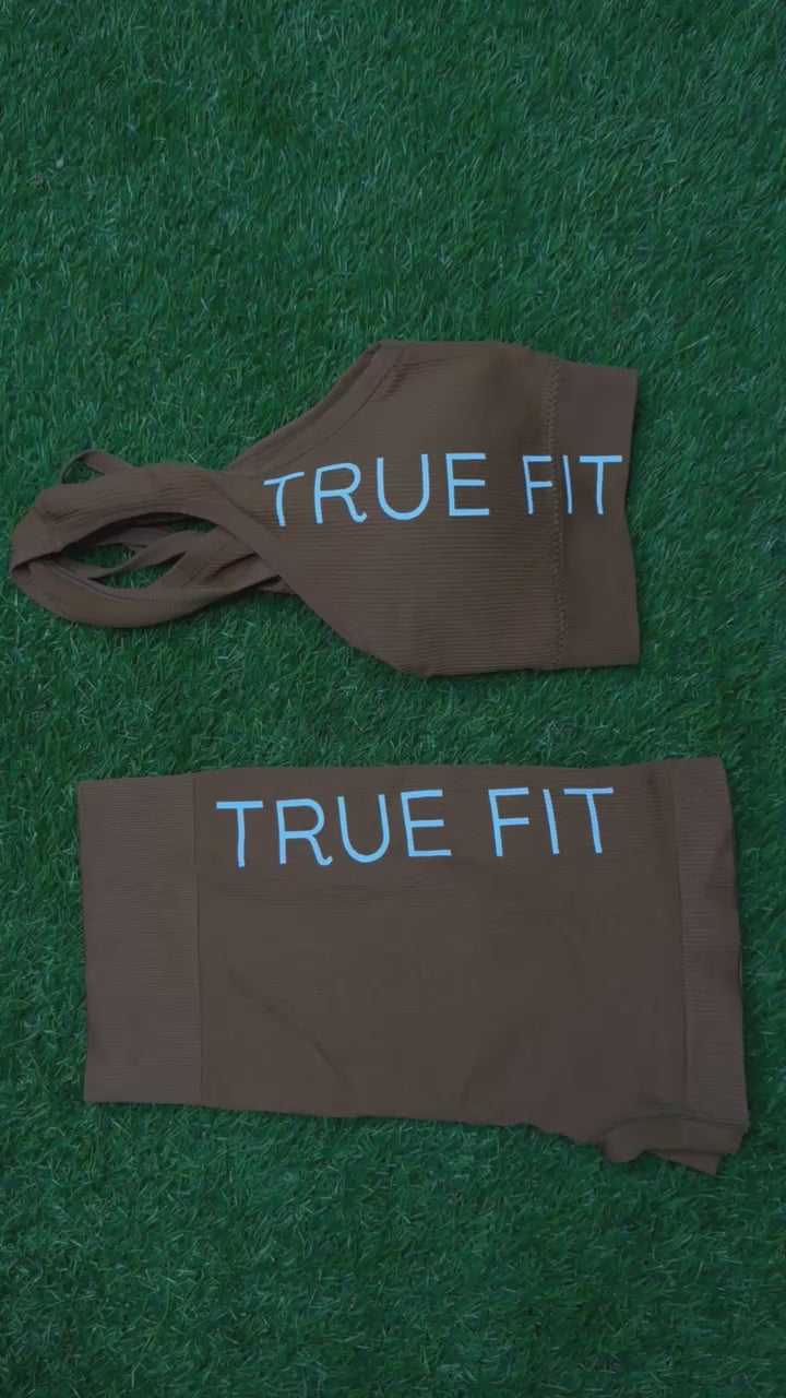 TRUE FIT™ Sports Bra & Shorts Set. Khaki